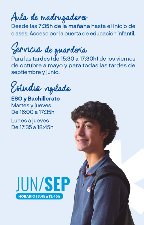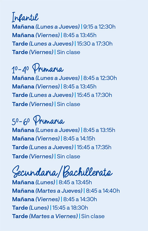 En los meses de junio y septiembre el horario es de 8:45 a 13:45 para todos los niveles educativos.